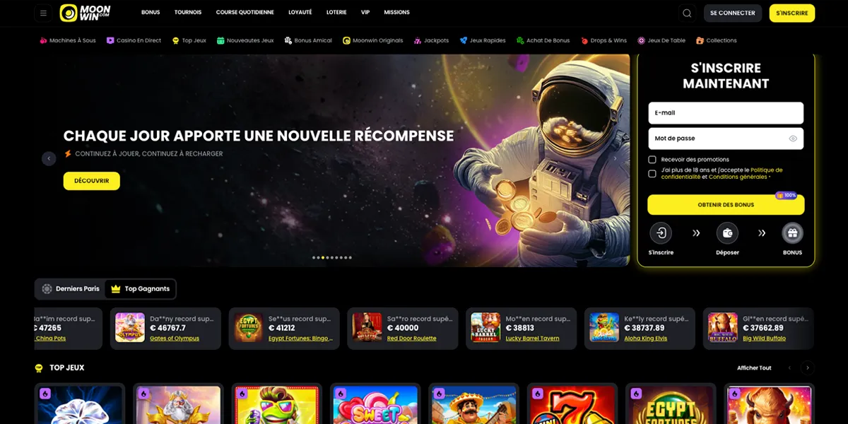 MoonWin Casino est l’un des meilleurs casinos en ligne sur le marché grâce à son interface moderne et intuitive, sa vaste collection de jeux et ses promotions attractives. Ce site appartient à Dama N.V., un opérateur international reconnu qui gère plusieurs casinos populaires. Lancé en 2023, MoonWin s’est rapidement fait une place parmi les meilleurs casinos en ligne pour les joueurs suisses, grâce à sa sécurité renforcée, sa licence valide à Curaçao et ses partenariats avec les plus grands développeurs de jeux comme NetEnt, Pragmatic Play, Yggdrasil ou Evolution Gaming.